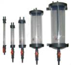 Consisten en vasos transparentes en PVC. Para comprobar la dosificación de productos en linea. Disponen de una escala graduada. Al cerrar la válvula de paso, permite cubicar la cantidad de producto que se ha dosificado, y al volver a abrirla entrará el producto, por gravedad, en su proceso.